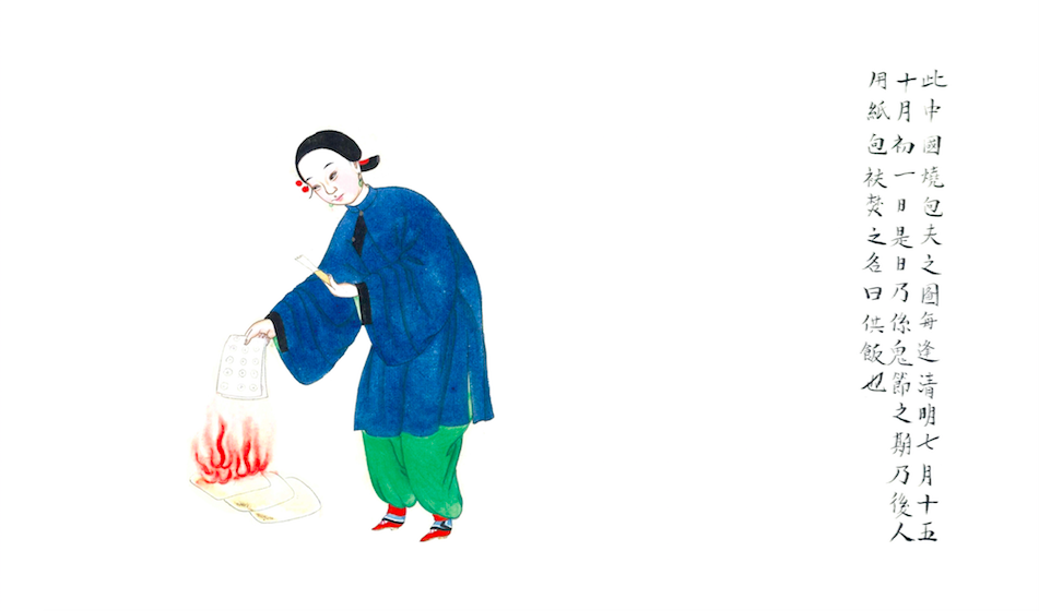 每年清明、七月十五、十月初一,各住房供包袱,内装烧纸、银锭,上写上三代名字,晚辈祭之也。