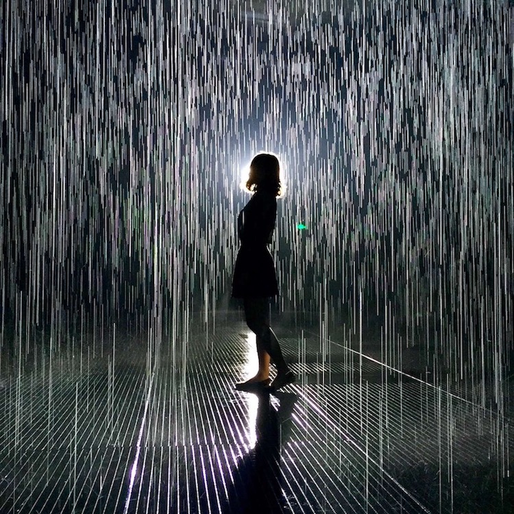 这个场景并不陌生。这种将艺术与科技跨界结合的数字互动展,在过去几年中让艺术展有了更广的受众。2015年上海余德耀美术馆的展览“雨屋”(Rain Room)就有同样的“网红效应”。这场展览在一个全黑的方形空间中模拟了一场倾盆大雨,而当观众走入其中时雨滴却会在周身戛然而止。你也许还记得当时朋友圈和微博也曾出现出过一阵“雨屋”刷屏。