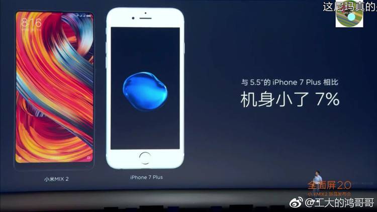 经微博网友@夜刈凋菱提醒,我们还发现和 iPhone 7 Plus 对比机身大小时,PPT 上用的图却是 iPhone 6/6s 直接放大到 iPhone 7 Plus 的尺寸又该怎么说?耳机孔都还在,Home 键和屏幕下边缘的比例都不对,我想作为一个有影响力的手机品牌,那么多研究手机、设计手机的专家,还会看不出来?又要甩锅给PPT 设计师?