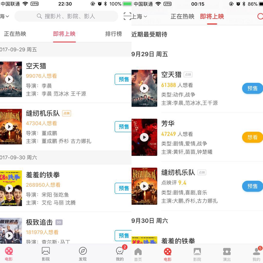 9月23日22点左右,有豆瓣网友发帖称:“据说《芳华》临时被禁全国下片。”而此时该片的深圳路演刚刚结束,似乎并无撤档的迹象。但随后更多的细节都表明,《芳华》可能无缘国庆档:先是淘票票购票APP上有关《芳华》预售的条目被删除,既无法显示排片,也无法购票。而此时的猫眼电影APP还显示《芳华》处于预售状态,并且能够正常看到预售排片与选座。