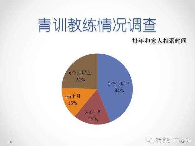 42份问卷结果显示,有44%的教练每年和家人相聚时间不足两个月,能有半年以上时间陪伴家人的仅占到24%。
