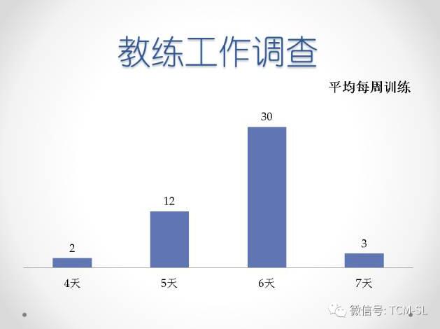 另一方面,47份问卷结果显示,70.2%的青训教练都无法正常享受双休日。唯一每周只进行4天训练的是恒大足校的两位西班牙教练马努·梅里诺。和莫雷拉斯。要强调的一点是,这仅仅是每周平均的训练天数,而不包括比赛,以及像集训这样长期出差的工作。