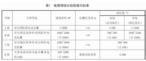 在今年6月1日的“中国电竞产业大会”上,中国体育场馆协会发布了国内首个《电子竞技场馆建设标准》,该标准由中国体育场馆协会批准并指导,华体电竞体育文化有限公司为首的十余家单位起草,规定了电竞场馆的建筑设计要求、分级、配置要求、智能化系统工程技术要求以及开放要求等内容,并按照举办电竞赛事级别、建筑规模等指标,将电竞馆分为ABCD四种级别。现阶段,这一标准并非强制性标准,更多起到的是参考、辅助作用。