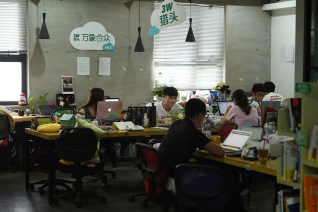 在中关村创业大街3W咖啡三层,约20家小型创业企业在这里集中办公(7月19日摄)。新华社记者 鞠焕宗 摄