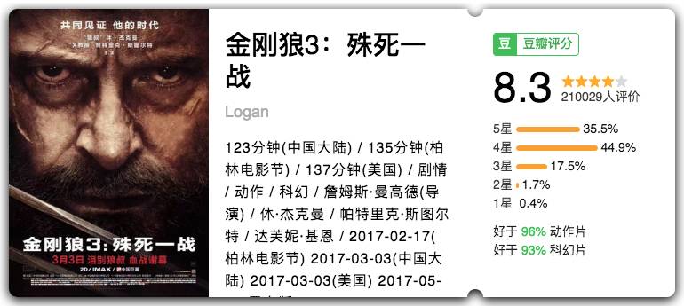 休·杰克曼的金刚狼系列谢幕之作,电影带上浓浓的悲剧色彩,以致敬和新生告终,看完实在泪目。休叔,再见!