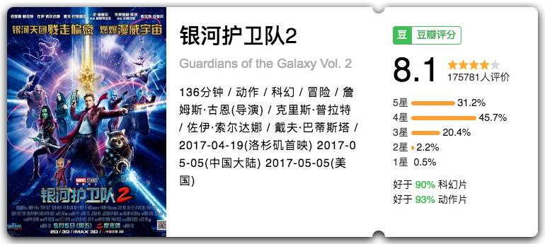 每年都会相约的漫威大片,在对《复仇者联盟》系列已经疲劳的今天,《银河护卫队》无论从逗比剧情、花式特效,还是星爵、Groot等一众演员,都为这个系列带来全新活力。