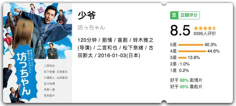 根据小说改编的日本温情喜剧,二宫和也饰演的少爷耿直又可爱,太适合不过了。故事简直就是日本版《死亡诗社》。