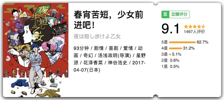 天马行空的想象力,今年日本二次元动画力作,在上影节展映后口碑爆棚,清新有趣而又诡异,却又笑到停不下来…