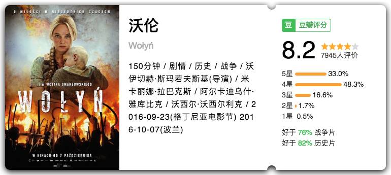 波兰战争题材,讲述了二战期间很惨的一个故事,堪比人间炼狱。看完之后沉重无比,三天走不出电影的情绪,很难恢复…