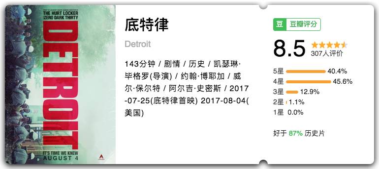 《拆弹部队》《刺杀本拉登》导演凯瑟琳·毕格罗拍摄的一部讲述1967年底特律黑人骚乱的电影,这是美国历史上破坏性最大的种族骚乱之一,这场骚乱持续了五天,造成43人死亡…