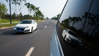 从我之前的试车经验来看,无论是日系混动还是美系混动,动力来源切换的可感知度还是比较高的,简单来说就是除噪音外,切换时细微的动力空白还是时有发生的,这就相当于变速箱换挡时的顿挫,虽然被抑制得很不错,但依旧会有存在感。而雅阁锐·混动三种驱动模式间的切换于我来说,只能通过发动机启动时发出的声音来进行判断,光靠行车感受很难分辨出当下的驾驶模式,而发动机的噪音和振动又被车辆本身极好的NVH做工隔绝在窗外,所以雅阁·锐混动可以说是将驾驶模式切换时的不适感降到了无感的阶层,这也是它在我心中可以被列为这个时代表现最佳的混动中级车的重要原因之一。