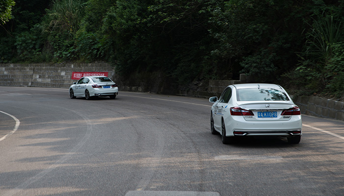 整个油耗比赛,雅阁锐·混动帮我养成了两大良好驾驶习惯:首先是开雅阁锐·混动除了等红绿灯和倒车时,完全可以抛弃刹车,采用放置于多功能方向盘后部的换挡拨片来控制车速,这台车上的换挡拨片和传统能源车上的拨片功用不同,由于并没有传动机械变速箱上的挡位之分,所以这套拨片的功能其实是混动车上常有的“B挡”——强制能量回收。通过左减右加来控制车速的同时还可以为电池充电,减少发动机启动几率。能否熟练运用拨片来回收能量是取得好成绩的关键因素,至少西南赛区的前两名晋级队伍中的选手都是手上功夫了得的练家子。