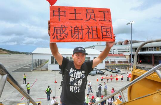 “感谢祝祖国接我们回家!我们在多米尼克等船等了三天,然后又在安巴等待飞机的到来,大家都翘首以盼着。看到飞机来的刹那,特别激动,都不敢相信!祖国太强大了!”覃远洲和很多同事都忍不住哭了。