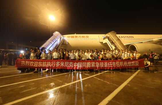 9月28日19点50分:中国民航局向东航发出执行多米尼克中方人员紧急转移回国航空运输的指令,东航立即启动应急响应。东航负责人要求坚决无条件服从国家号召,不计代价保障好紧急输任务。
