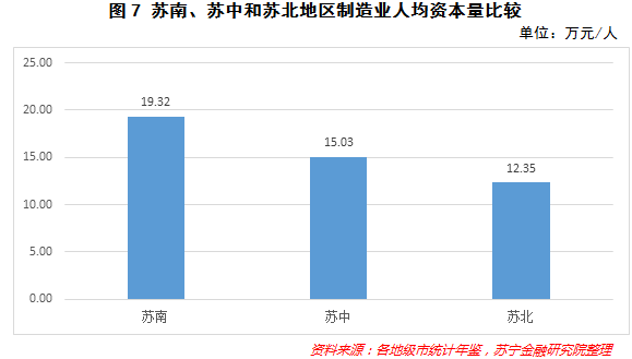虽然面临着转型阵痛,苏南地区有着江苏乃至全国最好的制造业产业基础,从人均资本量(衡量产业结构高度的重要指标)来看,苏南地区制造业整体的产业结构明显高于苏中和苏北(参见图7)。我们判断,在产业依次转移的预期下,苏南地区制造业将率先走出阵痛,尤其是电子信息制造业等高技术产业。