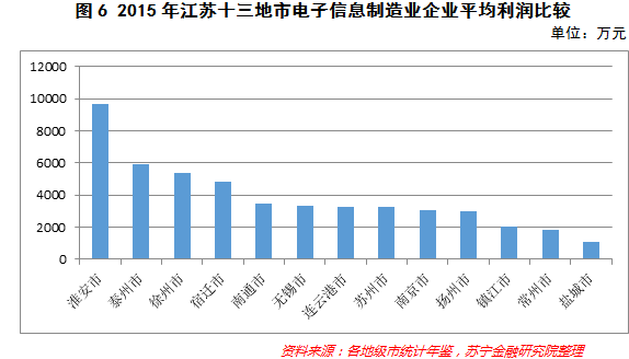 从盈利能力看,淮安市69家企业共实现利润总额66.6亿元,平均每家企业利润达到9645万元,是江苏省各市中单位企业盈利最多的地级市(参见图6)。
