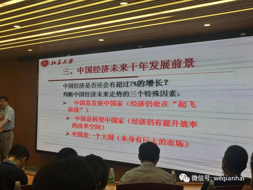 海闻坦言,总体来讲,通过一系列的技术指标,可以看到中国这一程的经济周期正在企稳向好。海闻表示,在未来几年,中国经济增长还会达到7%以上,能不能超过8%,也是有可能的。对于未来十年的发展,海闻也是持乐观态度。他从三个角度来分析,中国经济发展与发达国家不一样:第一,是中国还在发展中,处在起飞阶段,且并没有结束,因此快速的增长是正常的,“一旦起飞的时候就停不下来”;第二,中国是转型中国家,还有很多改革可以释放发展空间;第三,是中国有大国独特的特点,中国本身拥有很大的市场,这可以解决许多国家在增长停滞时所面临的问题。