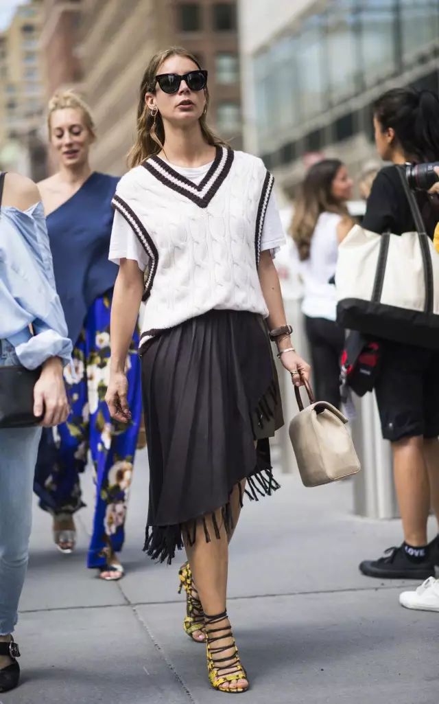 虽然对于北方的小伙伴现在这个时间已经有些凉快,但是南方却是最舒爽的时节。有太阳又不会出汗,吹着风也不会觉得冷,昼夜有些温差却刚刚好。这个时候,针织背心就应该穿起来了,白天外穿,晚上套一件外套,又美又保暖。稍微冷一点地区的朋友也能借鉴。