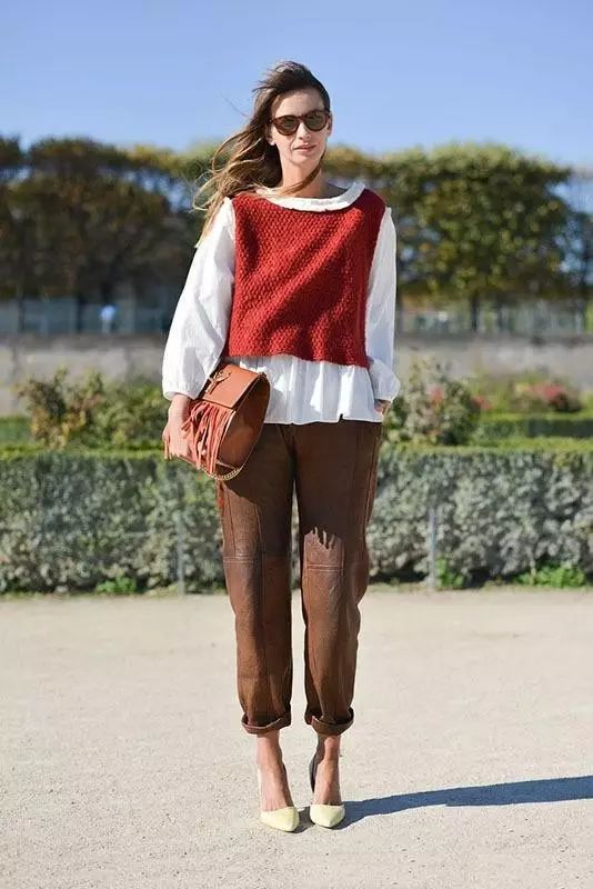 白衬衣+针织背心真的是永远不会过时的装扮,怎么穿都不会出错。