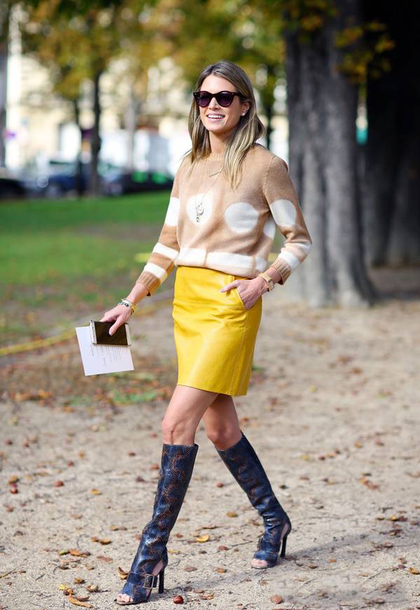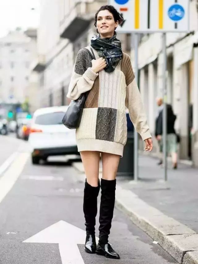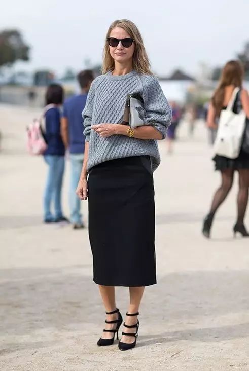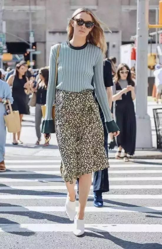 无论是宽松的针织衫还是修身的,配上一条半裙准没错。
