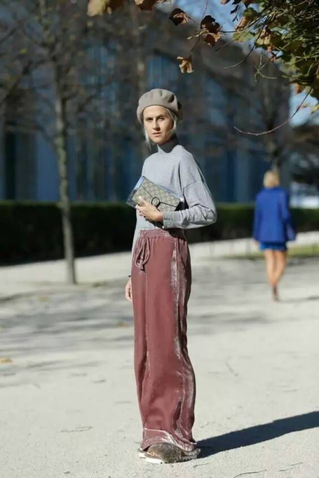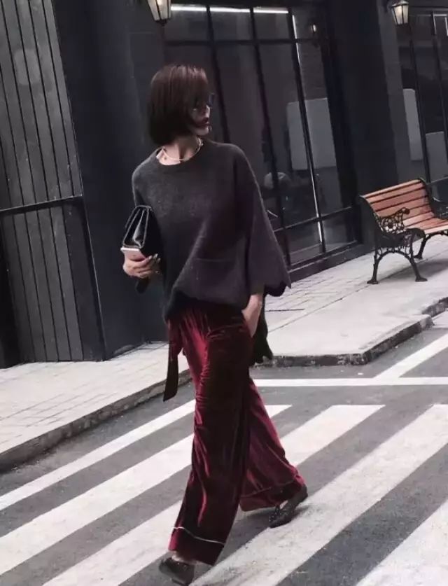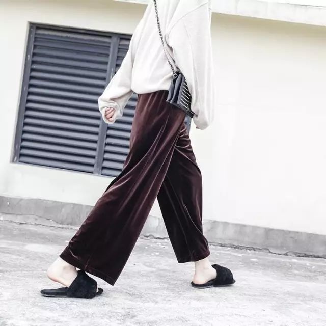 今年真的非常流行丝绒了,而且秋季品牌都推出了丝绒阔腿裤,舒服又百搭。