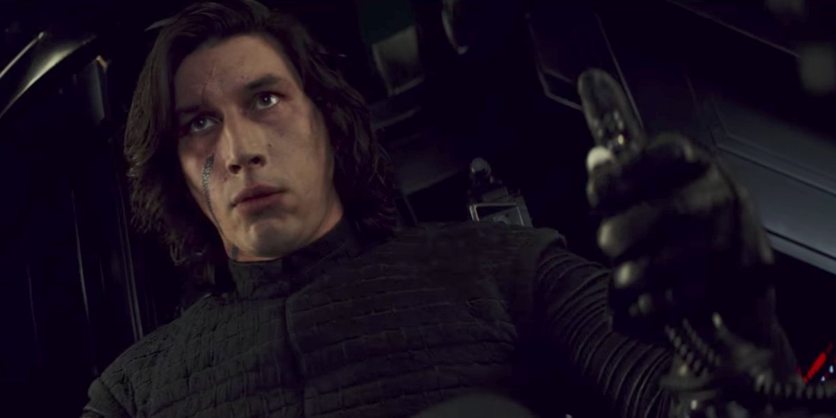 看起来,上一部《星球大战》结束后,凯洛·伦又得到了一顶新头盔。我们听到,仿佛是斯诺克的声音在说,“当我找到你时,我看到了原始且还未驾驭的力量。除此以外,还有些极其特别的东西。”当然,这个画面也有可能是闪回,我们看到他从地上拾起了他的三棱光剑。
