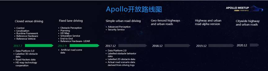 今年百度成立智能驾驶事业群组(IDG),由百度操盘手陆奇亲自掌舵,不久,意在成为汽车界的“安卓”的Apollo平台发布,意味着百度在智能驾驶上走上开放之路。Apollo包括车辆平台、硬件平台、软件平台、云端数据服务等四大部分,整合了车辆、芯片、车载硬件、传感器等领域的合作伙伴,开放了环境感知、路径规划、车辆控制、车载操作系统等功能的代码或能力。