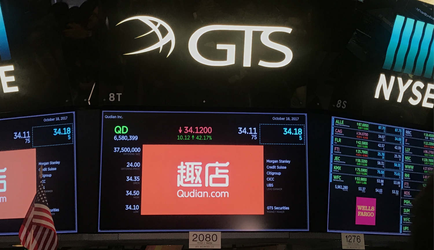 今天在美国纳斯达克上市的趣店集团(NY纽约交易所:上市第一天就上涨30%,市值达到100亿美元)就是我在投资笔记一和二里面讲的公司趣分期,后来更名为趣店集团,更名还有一段故事,我在文章中也会写到。