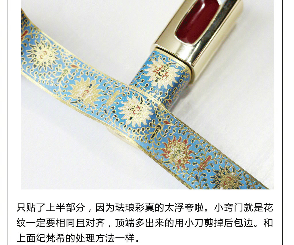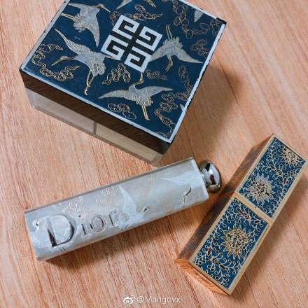 总是用文创产品掏空你钱包的故宫淘宝最近又引领了一波新的潮流:用纸胶带装饰彩妆。起初一个用纸胶带缠绕口红的灵感被官方微博放大之后,网友们的创作热情就停不下来了。于是你会看到一众大牌的口红变得极具中国风起来,比如Tom Ford被黑底烫金龙纹装饰得威武霸气,纪梵希在黑漆嵌螺钿图案的装饰下添上几分优雅,烫金掐丝珐琅缠枝莲纹更是让欧莱雅变得无比华丽。