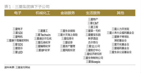 如今,处于科技漩涡之中的三星电子仅仅是三星帝国的一部分。由于历史等原因,三星帝国的疆域之广,或远超你想象。举个简单的例子,在2014年的世界五百强的名单里,就有包括三星电子、三星物产、三星人寿保险三家公司上榜。其中,三星电子排名第13位,后两者分别排在第460和第458位。