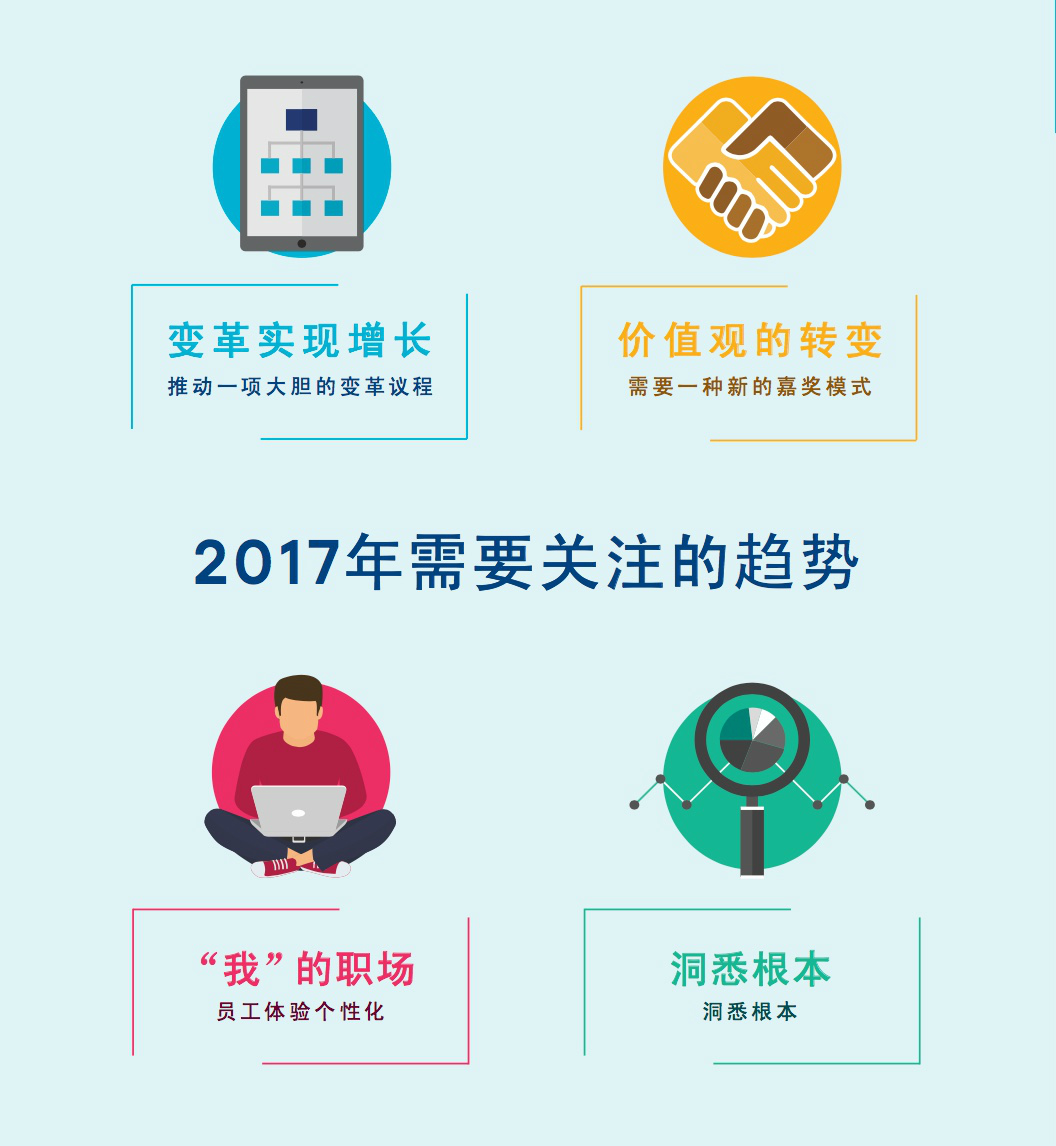 第四个趋势是洞悉根本。事实上过去两年里中国企业在预测性分析上有着令人难以置信的长足进步。我认为数据是真正理解职场中五个不同世代员工需求的唯一方式,我们需要想办法让这个观点进入企业最高管理层的议程。因为有了数据,我们就能告诉他们,“嗨,我们发现如果你有10个直接汇报的下属而不是8个直接汇报的下属的话,员工离职率会降低10%。”这是HR在重新设计未来职场时应该能够给出的反馈。不幸的是,我们现在虽然有数据,有做分析的能力,但推动变革的速度仍不够快。