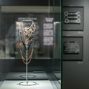 环扣这一细小而又形状特异的部件,成为爱马仕珠宝配饰重要的灵感来源。位于巴黎福宝大道24号旗舰店的档案馆中,依然珍藏着分类金属板。爱马仕珠宝设计总监Pierre Hardy亲自设计的项链——“华丽的繮辔”在展厅中异常瞩目,与第一个展厅中的标识性方巾遥相呼应。