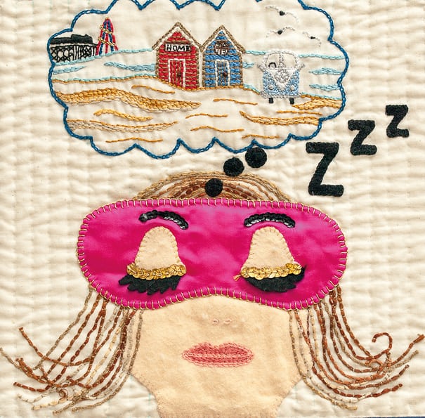 特蕾西·雪佛兰(Tracey Chevalier)最新的作品名为《睡眠被》(The Sleep Quilt),封面上缝着“把手电筒关了,我只有两小时”的字样。这位作家解释道:“说这句话的犯人在自杀监视名单上,他每隔两个小时就会从睡梦中惊醒,确认他自己仍然活着。这种情况在他身上已经发生了24年,这很可怕。对他来说,他需要睡眠,但睡觉同时也是痛苦的经验。