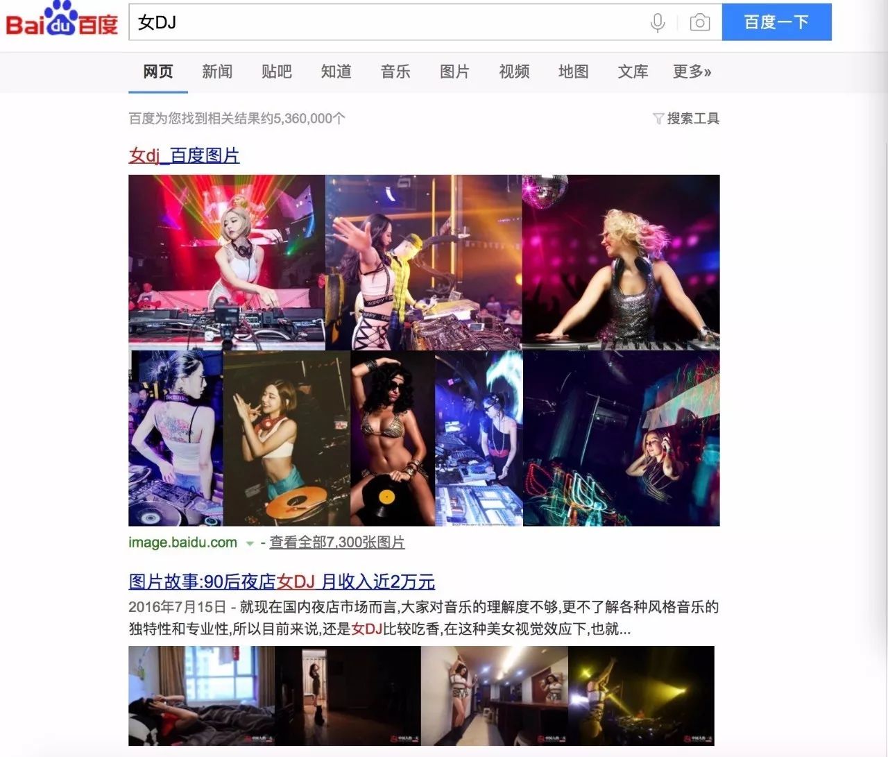 “如果你在Google里搜索’女DJ’这个词条,网页上不会出现很多知名的女制作人,”NERVO组合中的Miriam Nervo在接受采访时说,“你能得到的只是很多穿着比基尼、戴着耳机的漂亮女孩。而你Google’男DJ’时却不会出现那种光着上半身的性感男孩。我认为这是作为电子音乐女艺人真正的耻辱。”