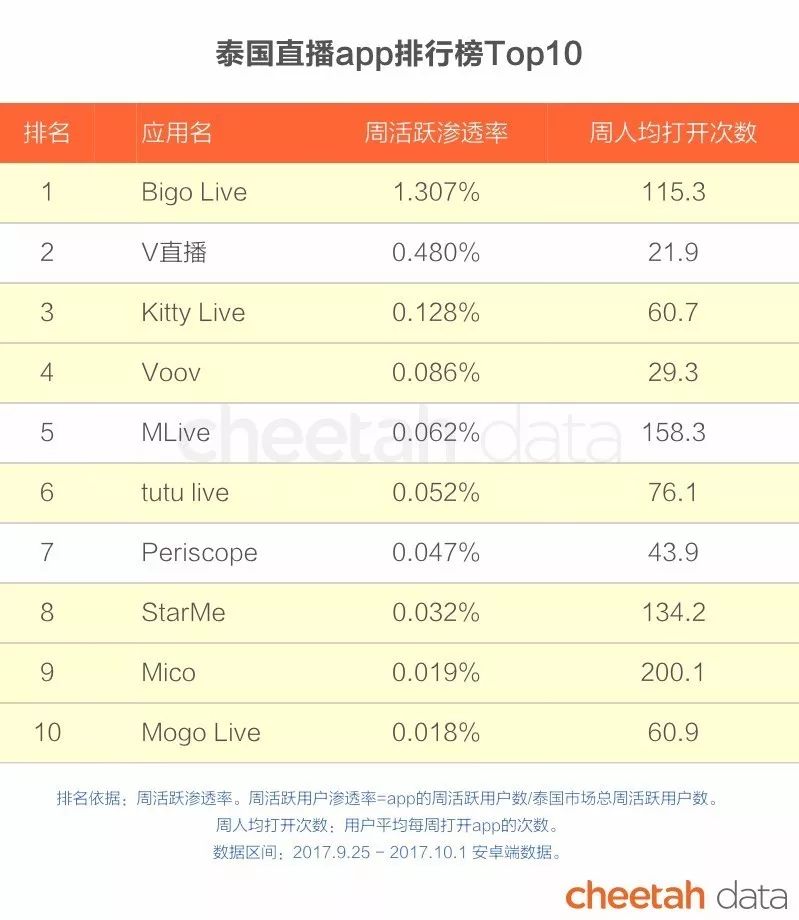 进入泰国直播app排行榜前十名的中国应用有7款。除Bigo Live外,Kitty Live,Voov和tutu live分列三、四、六名,香港全民快乐科技有限公司研发的StarMe排在第八位。