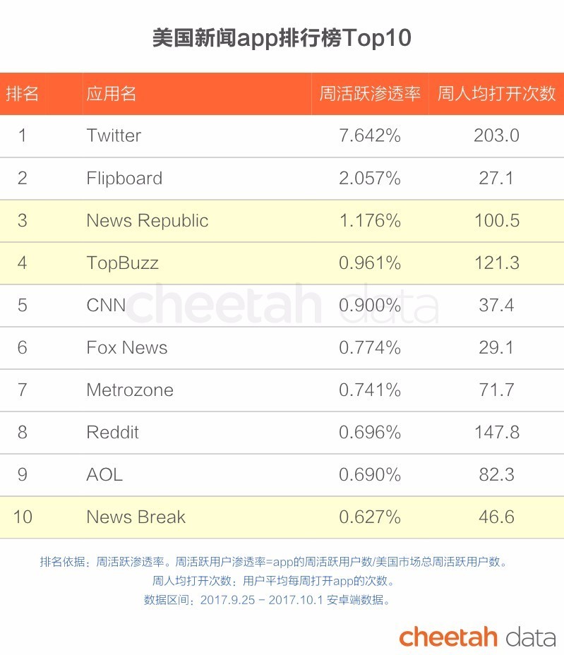2.排行榜的排名依据为周活跃用户渗透率;只适用于安卓平台;排行榜应用以包名为准,不同包名的同名应用数据未相加;