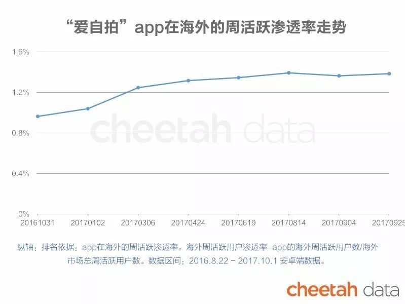 爱自拍近一年多以来在海外的周活跃渗透率一直处于增长趋势,与去年同期相比,周活上涨达60%以上。