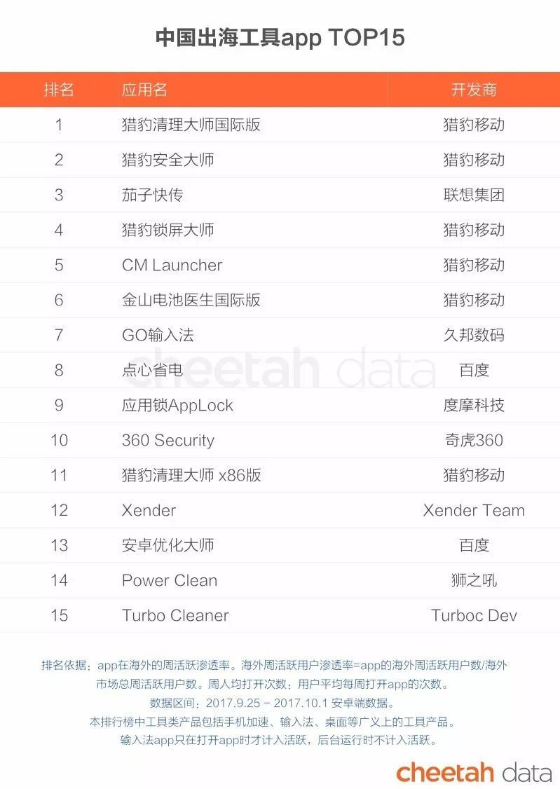 1.除特别说明外,数据来源于“猎豹大数据”(cn.data.cmcm.com)移动数据分析平台,猎豹全球智库将在此基础上为大家提供更权威、详实的移动互联网行业报告;