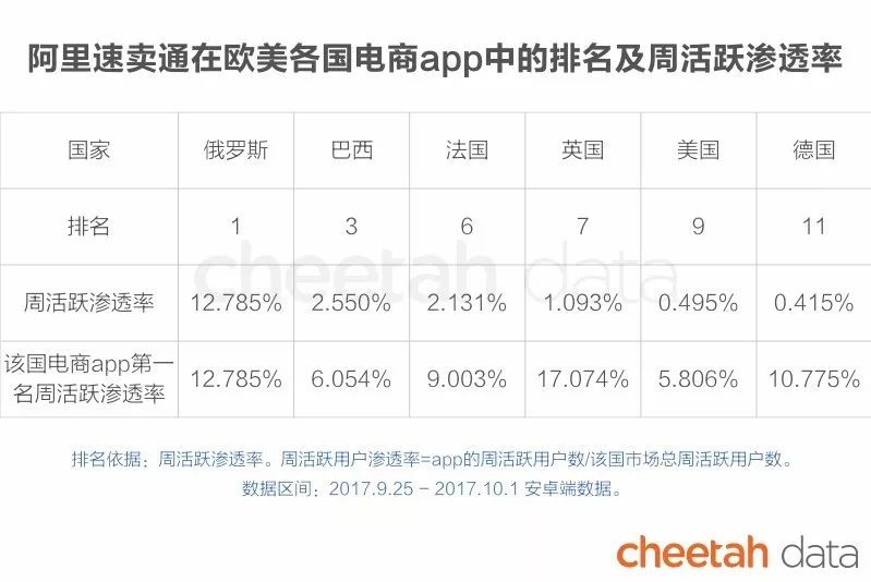 俄罗斯电商app的渗透率很高,而且来自中国的货物颇受欢迎,来自中国的跨境电商在俄罗斯大有可为。由俄罗斯电子商务协会与俄罗斯邮局进行的市场调查显示,2016年,来自中国的商品已占俄罗斯在线跨境贸易总额的52%。阿里速卖通在该国接近12%的周活跃用户渗透率就是最好的证明。