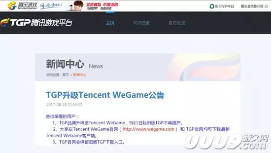 2017年8月28日,腾讯TGP平台(Tencent Game Platform)发出官方公告:TGP品牌升级至Tencent WeGame,9月1日起旧版TGP不再维护,并下架了所有的手游。这意味着WeGame正式成为TGP的升级进化版平台,和Steam平台一样成为PC端游戏为主的服务平台。