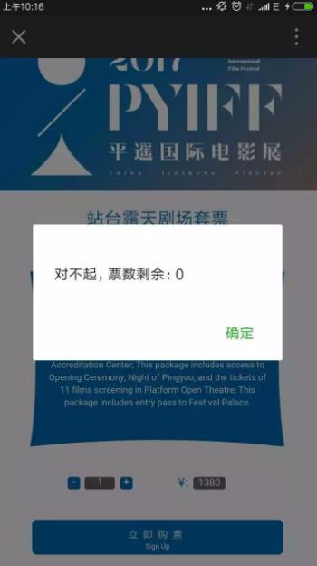 不过套票与单场次售票并存的制度,也是首届平遥电影展最大的争议之一。由于购买套票的观众并不能凭套票观影,而是需要在现场票务中心换取特定场次电影票,部分影片售票火爆,导致套票观众无法领到票,甚至存在疑似超售的情况。