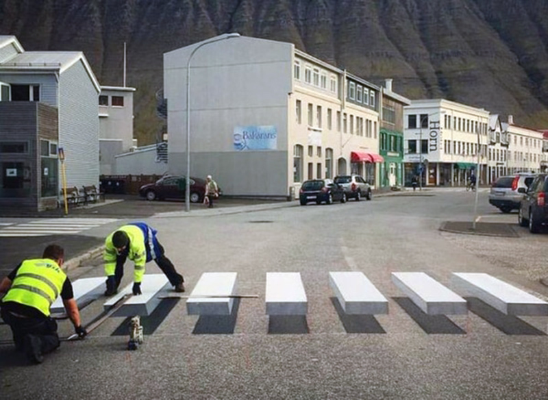 在冰岛,3D的人行横道通过减速交通使街道更安全,而且过马路也变得更加有趣