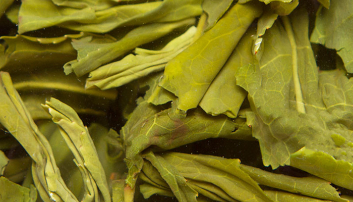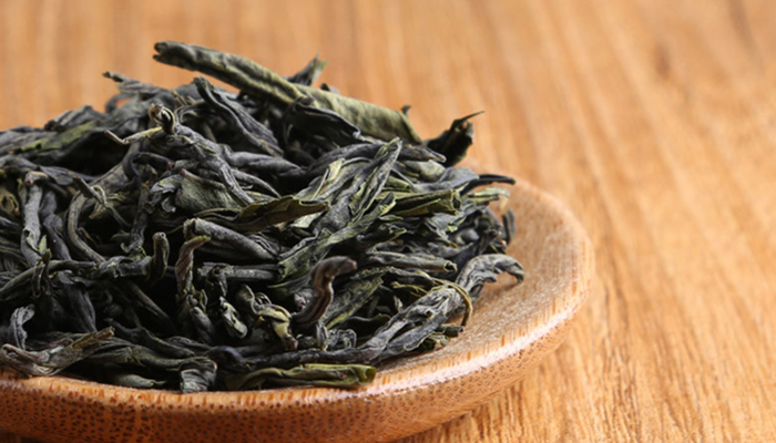 茶叶深绿,叶质柔软,带有碎叶,匀整度较好。