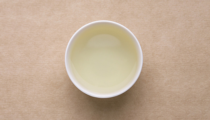 汤色浅黄绿,明亮度较高;茶汤入口柔滑,鲜甜度增强,汤质淡薄。茶汤含有清爽的嫩板栗香和花香。舌面轻涩快速化开,生津明显,清凉持久,喉有留香。