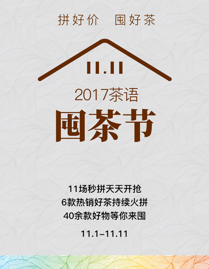1、此次茶语拼茶节针对所有茶语网的注册用户,活动时间:2017年11月1日——2017年11月11日;