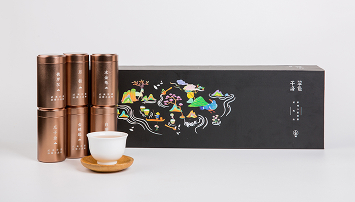 今年2017年千峰翠色延续去年的优秀品质,内含6款小品种名丛:水金龟、瓜子金、月桂、铁罗汉、白瑞香、金锁匙各一泡,皆为武夷山原生种,有着独特的武夷岩茶香与韵。