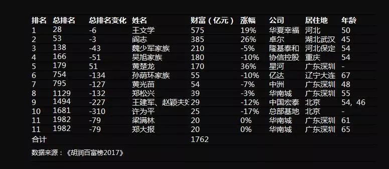 在今年的胡润排行榜上,王文学的身价是575亿,较去年的483亿涨19%,总排名下滑6位。