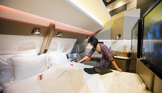十年前,作为全世界第一家接收双层巨无霸A380的公司,新加坡航空(Singapore Airlines)当年推出了“空中双人床”的产品,两个并排的头等舱套间可以合并成一个双人床小房间,但是随着最初的五架A380租约陆续到期,新航也对服务进行了一次升级。