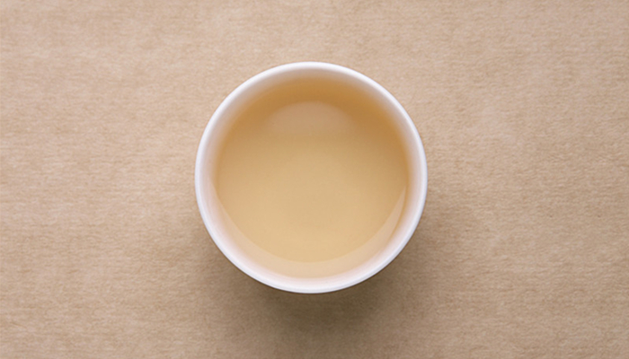 汤色浅黄,明亮度颇高;糯甜香和蜜香入汤;回味带果香;茶汤带稠感,甜润适口,有一定鲜爽度,入口立刻有生津回甘。
