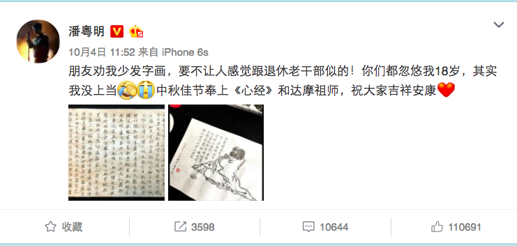 界面娱乐:之前有说到会把《心经》抄了送朋友,现在画也会送朋友吗?